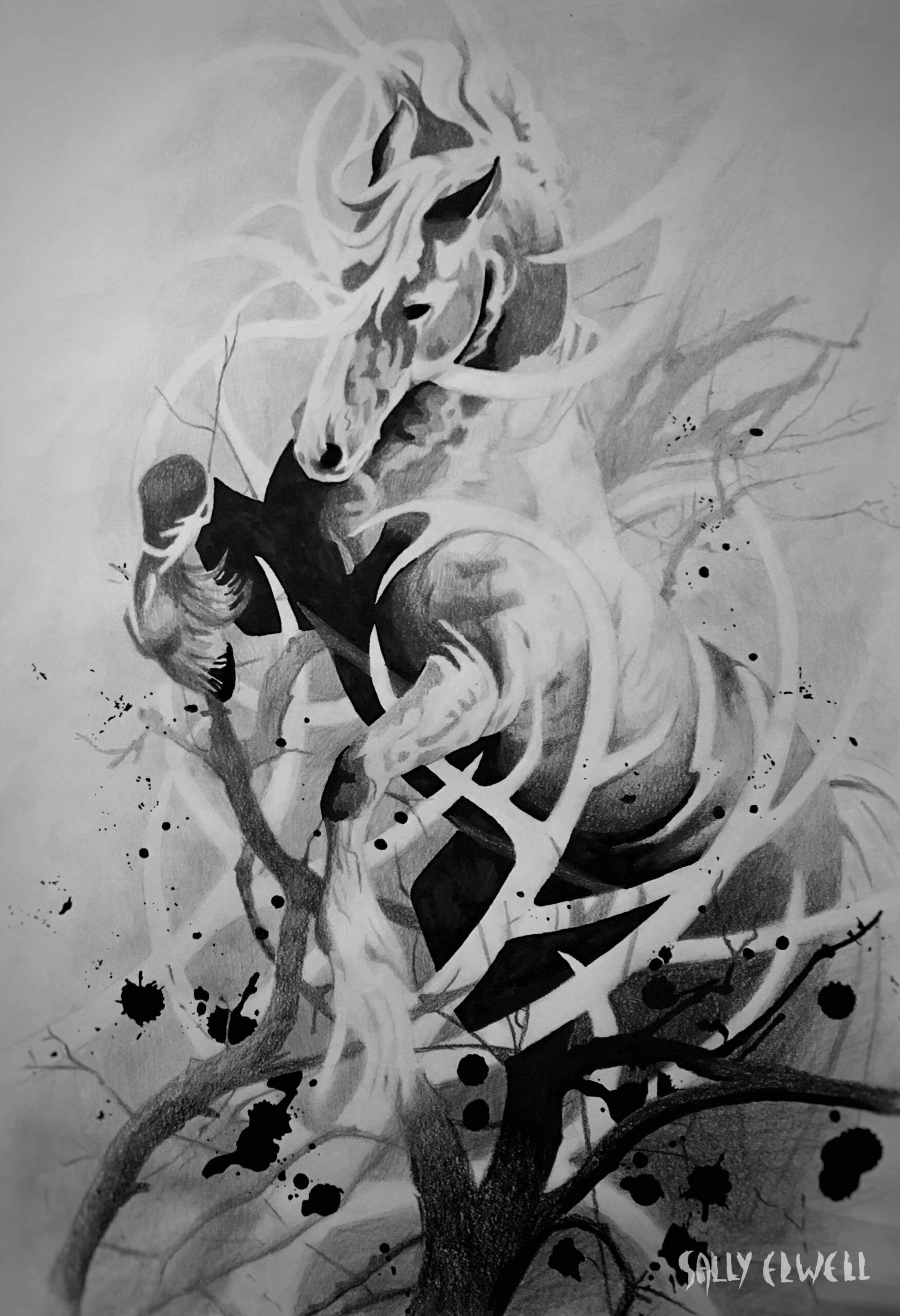Je puise principalement mon inspiration dans la nature et ses motifs. J’aime entre autres, confronter la faune et la flore à un style graphique travaillé, accentué par les nuances de gris, le tout pour représenter le contraste entre le primitif et le civilisé.